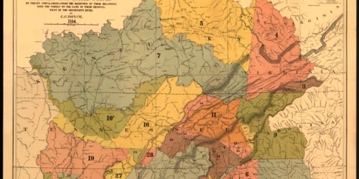 Cherokee territorial lands [26]. (A) ′′Map of the former territorial limits of the Cherokee ′Nation of′ Indians′′, i.e., prior to displacement of Euro-Americans.